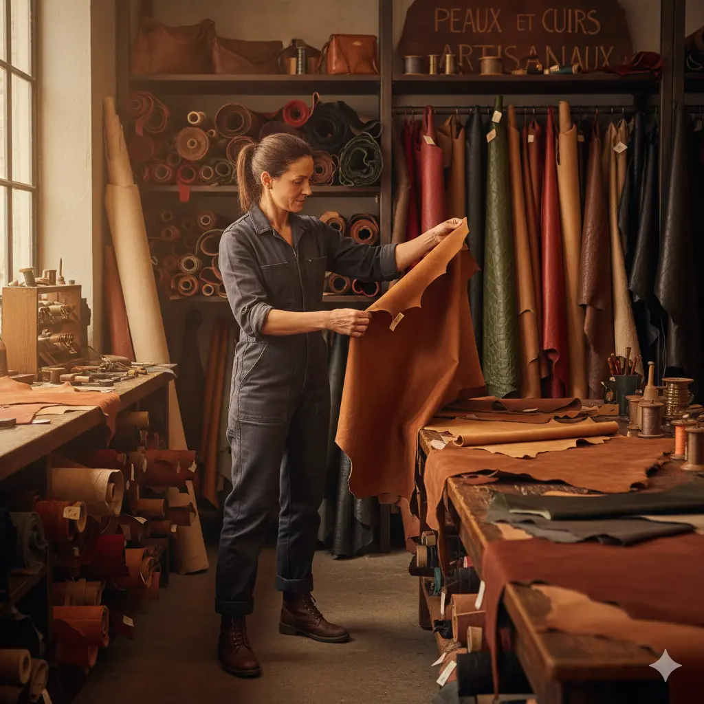 Leathers, suedes, furs, sheepskins and cow rugs. For clothing, leather goods; crafts, harnesses and saddlery, belts, shoes...